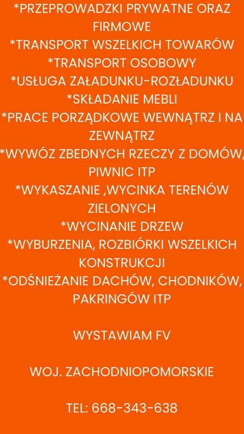 1: TRANSPORT WSZELKICH TOWARÓW2: PRZEPROWADZKI PRYWATNE FIRMOWE I INNE